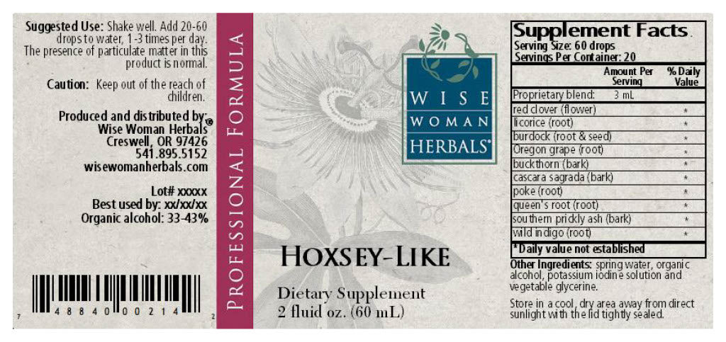 Ingredients: Red clover, licorice, burdock, Oregon grape, buckthorn, cascara sagrada, poke, Queen's root, Southern prickly ash, wild indigo and 5% solution of potassium iodide in a base of organic cane alcohol, mountain spring water and vegetable glycerine.