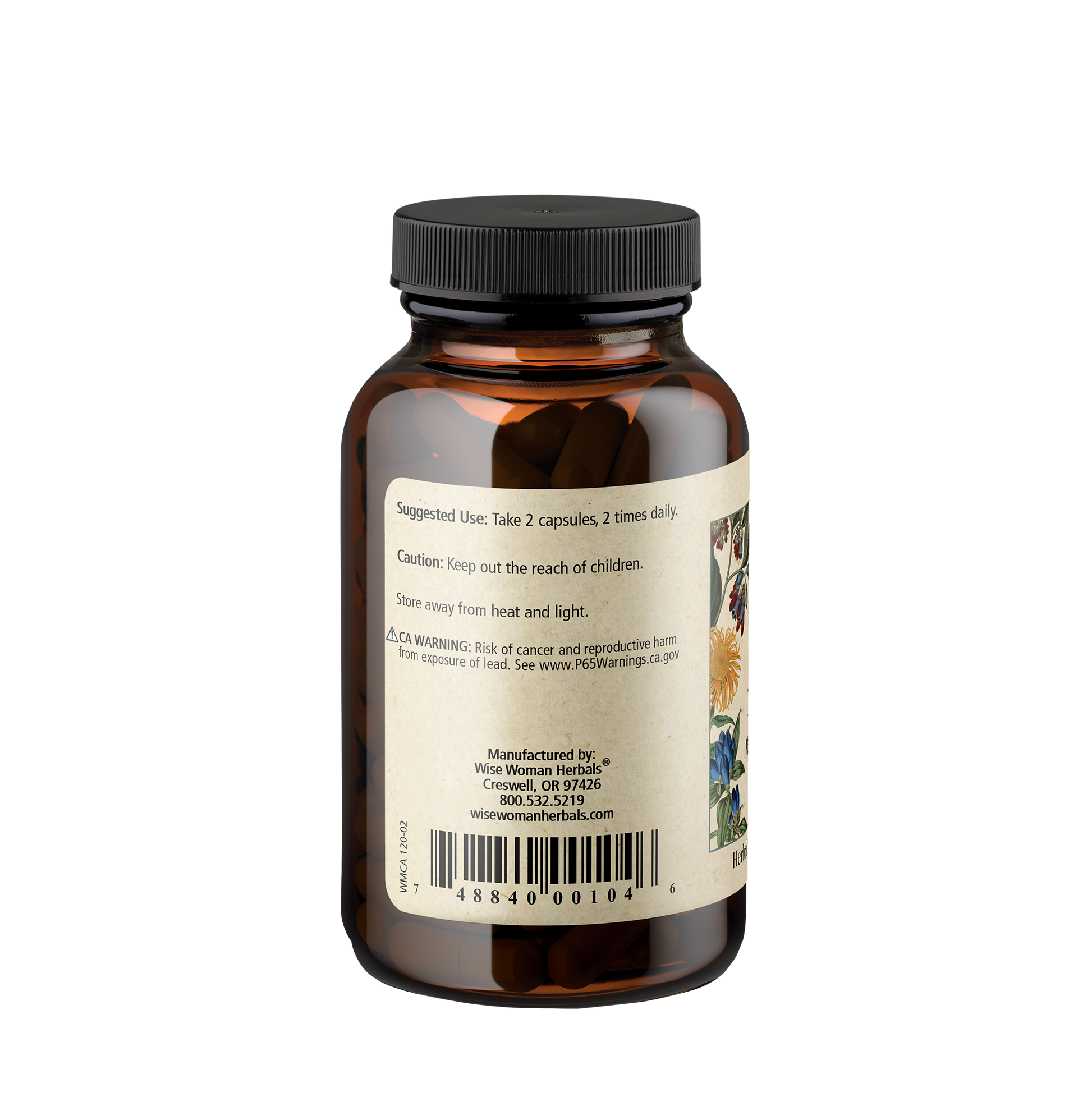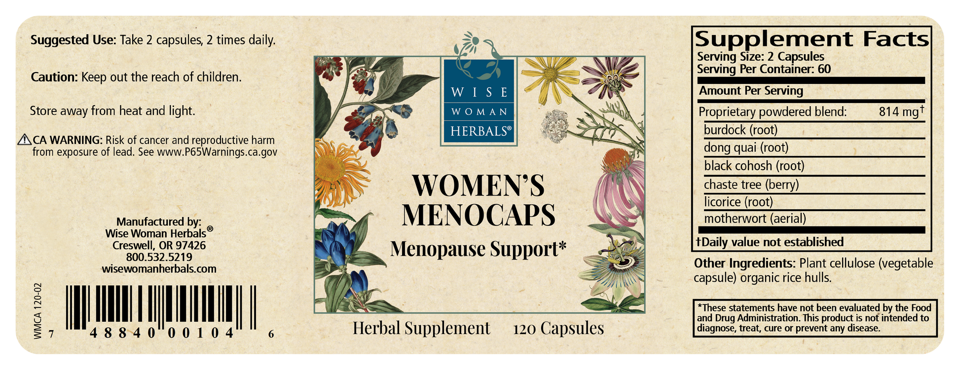 The female glandular system is a communication system not altogether unlike the nervous system. Through a release of chemicals and hormones, our bodies are able to maintain a steady internal balance and health. As a woman transitions through the menopausal years, these vital hormones and chemicals can become out of balance causing the transition of life to be uncomfortable. Wise Woman Herbals® Women's Menocaps are specifically designed to support healthy and normal female glandular system function and promote mood balance and relaxation.